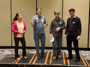 Third Time’s A Charm – Friday morning’s winning quartet and Friday’s evening’s Mic Testers. (L-R) Peggy Wu, Andrew Borts, Jeff Paul, and Gary Raulerson.